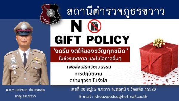 13 มี.ค. 68 สถานีตำรวจภูธรขวาว NO GIFT POLICY งดรับ งดให้ของขวัญ...